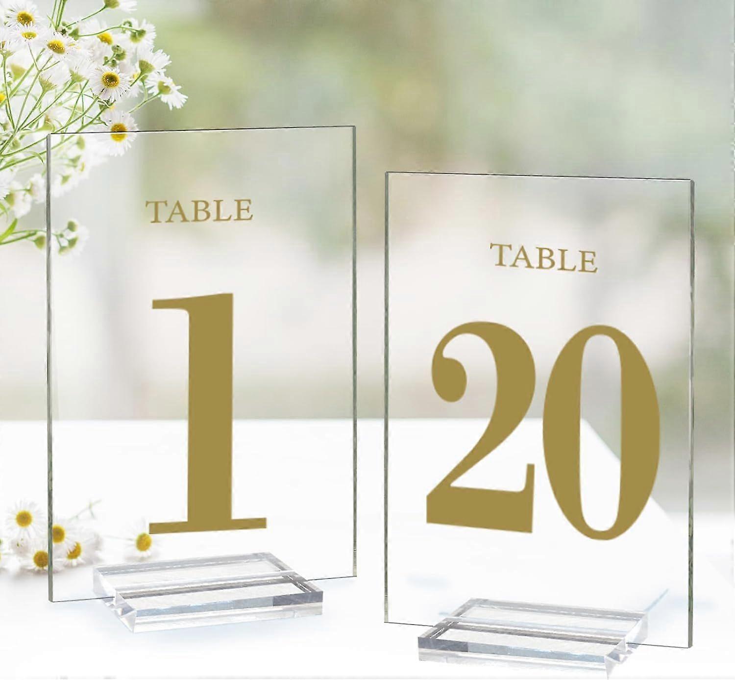 Elegance in Gold: Elevate your wedding decor with the touch of glamour provided by our gold acrylic table numbers, creating a memorable ambiance that impresses your guests. Superior Quality & Durability: Our acrylic table numbers are crafted with precision, ensuring sturdiness and scratch resistance for long-lasting use, maintaining their pristine look through countless events. Versatile & Stylish: Ideal for weddings, receptions, parties, and more, our acrylic table numbers add a touch of sophistication to any event, reflecting your taste and ensuring a seamless guest experience. Effortless Setup: Easily arrange your wedding seating chart with our user-friendly acrylic table signs and stands, saving you time and effort, so you can focus on perfecting every detail of your special day. Unbeatable Value: Get a complete set of table numbers, including table number stands, at an affordable price, offering exceptional value for money without compromising on quality.