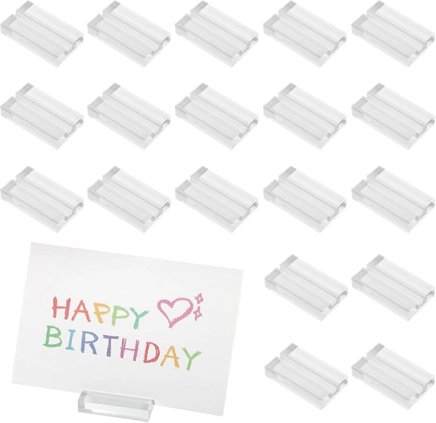 Durable Acrylic Material: Made of quality polished acrylic, these stands are not easy to crack, chip, or fade, easy to clean, and sturdy. Plus, their sleek, clear appearance complements any interior decor while they last event after eventSuitable Size: With dimensions of 5 x 3 x 1cm (2 x 1.2 x 0.4''), these stands are just the right size. They can accommodate most wedding place cards and restaurant menus with grace. Theyre compact enough to not dominate your decor but substantial enough to deliver information with clarity and styleWide Application: These holders are incredibly versatile and can be used at weddings, birthdays, restaurants, parties, and more. Whether youre using them to guide guests to their tables, showcase cherished memories in style, or present delectable dishes with elegance, they enhance the presentation of your eventSecure Card Placement with Card Slot: Boasting long and narrow card slots on the base, these holders securely grip place cards, photos, menus, or signage while preventing accidental falls. And dont forget to peel off the protective film to reveal their crystal-clear shine before useSufficient 24 Pieces: Our acrylic stands come with 24 pieces, providing an ample supply for all your event needs. You dont need to worry about running out of them easily. Just make your special moments shine with more than enough at your fingertips