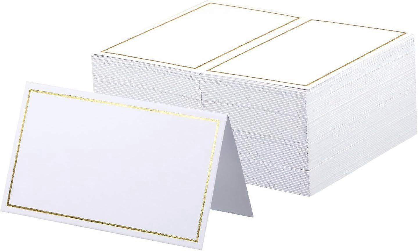 Sleek design: With a minimalist and sleek design, these tent cards effortlessly blend into any setting, allowing your message to shineVersatile Use: Suitable for a wide range of events, such as weddings, banquets, meetings, name cards, table numbers, and moreYou will receive 120 place cards, which cannot be used for printing with a printer. Make sure to always have some on hand when organizing eventsSome uses for these place cards include the following: food labels at banquets or parties, product labels at farmers markets and moreIncludes 120 pieces of small place cards with luxurious gold foil borders, perfect for weddings, boutiques, trade shows or any event that has reserved seating. These cards are blank for customization by hand
