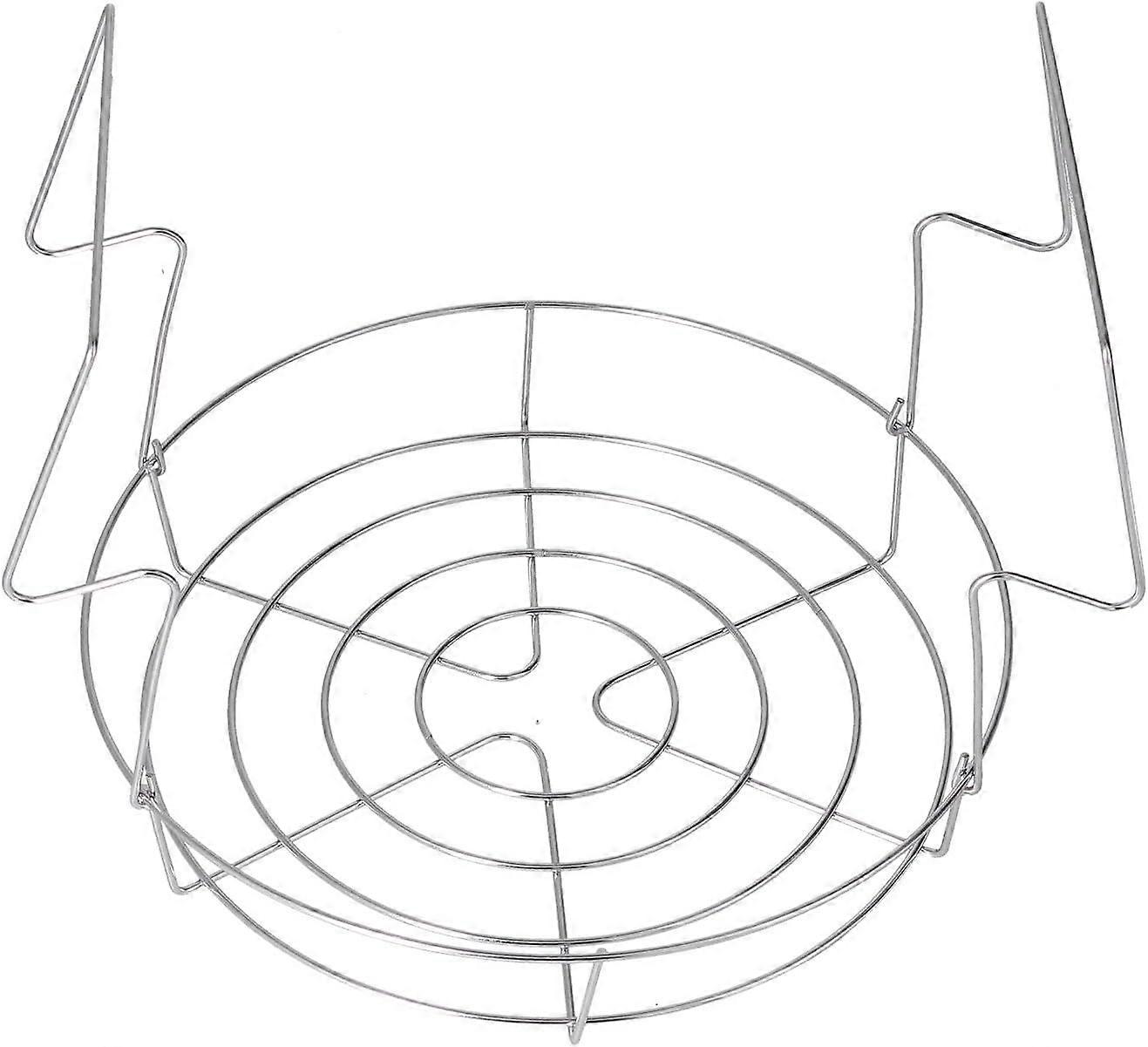 FOLDING HANDLE: Canning rack for hot water canner, this steam basket equipped with two foldable handles, it is very easy to grasp, suitable for lifting the jar, and the canning rack for water bath canner handles can be folded neatly for storage.HIGH QUALITY MATERIAL: Our steamer canning jar rack is made of high quality 304 stainless steel, which is stronger, more durable, non rusting, and resistant to deformation, our water bath canning rack has good stability and storage.CANNING BASKET SIZE: The canning rack top size 29cm/11.4in, bottom size 27.5cm/10.8in, suitable for wide mouth or common mouth mason jars and spherical tanks, the small canning rack can hold 8 mason jars of 16 fluid ounces.PRACTICAL STEAM RACK: This stainless steel steamer canning jar rack can cooking canned food in batches at the same time, which helps to save cooking time. Avoid putting the cans directly into the pressure cooker to prevent easy shaking and bumping during the cooking process.ANTI SCALDING HANDLE DESIGN: Stainless steel flat canning rack with handle, anti scalding and anti slip, use this canning rack 10 inch help you don't have to worry about burning your hands when you take it out of boiling water, you can lift and support the jar on the pot.