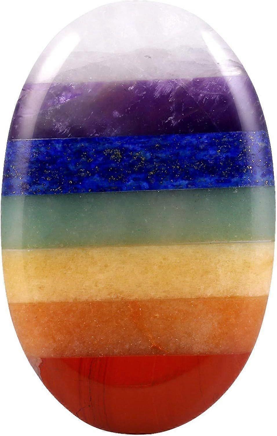 7 Chakra Thumb Worry Stone, Oval Shape Polished Pocket Palm Stone for Anxiety