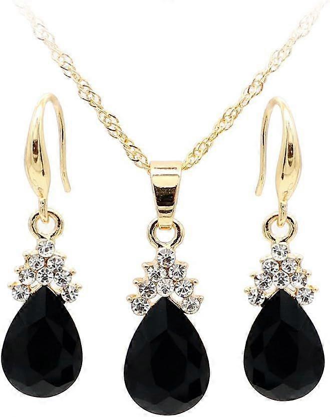 Vintage Teardrop Faux Rhinestone Women Jewelry Set Necklace Hook Earrings