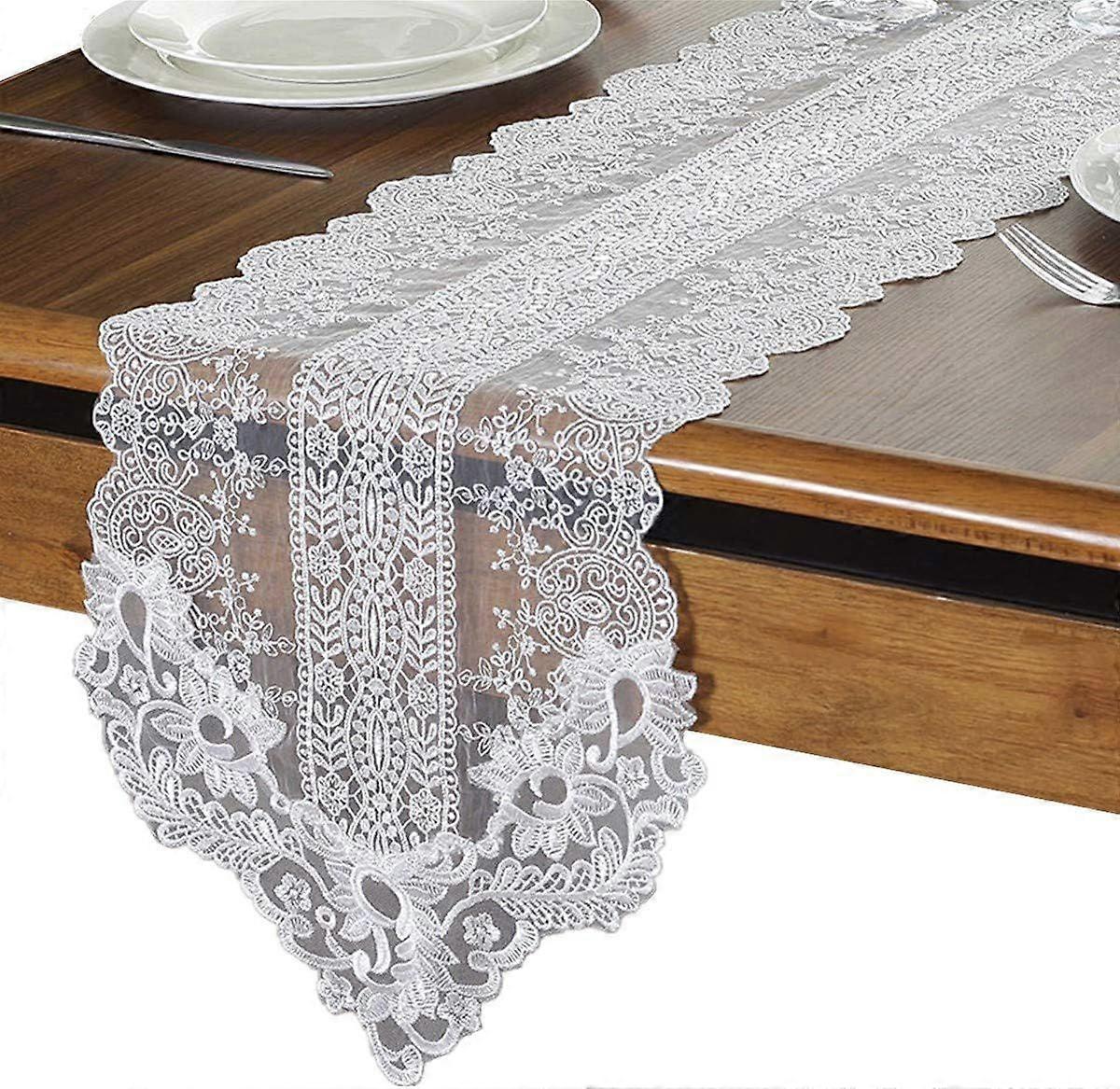 Floral Embroidered Classic Lace Table Runner and Dresser Scarf, 12 x 82 Inch,
