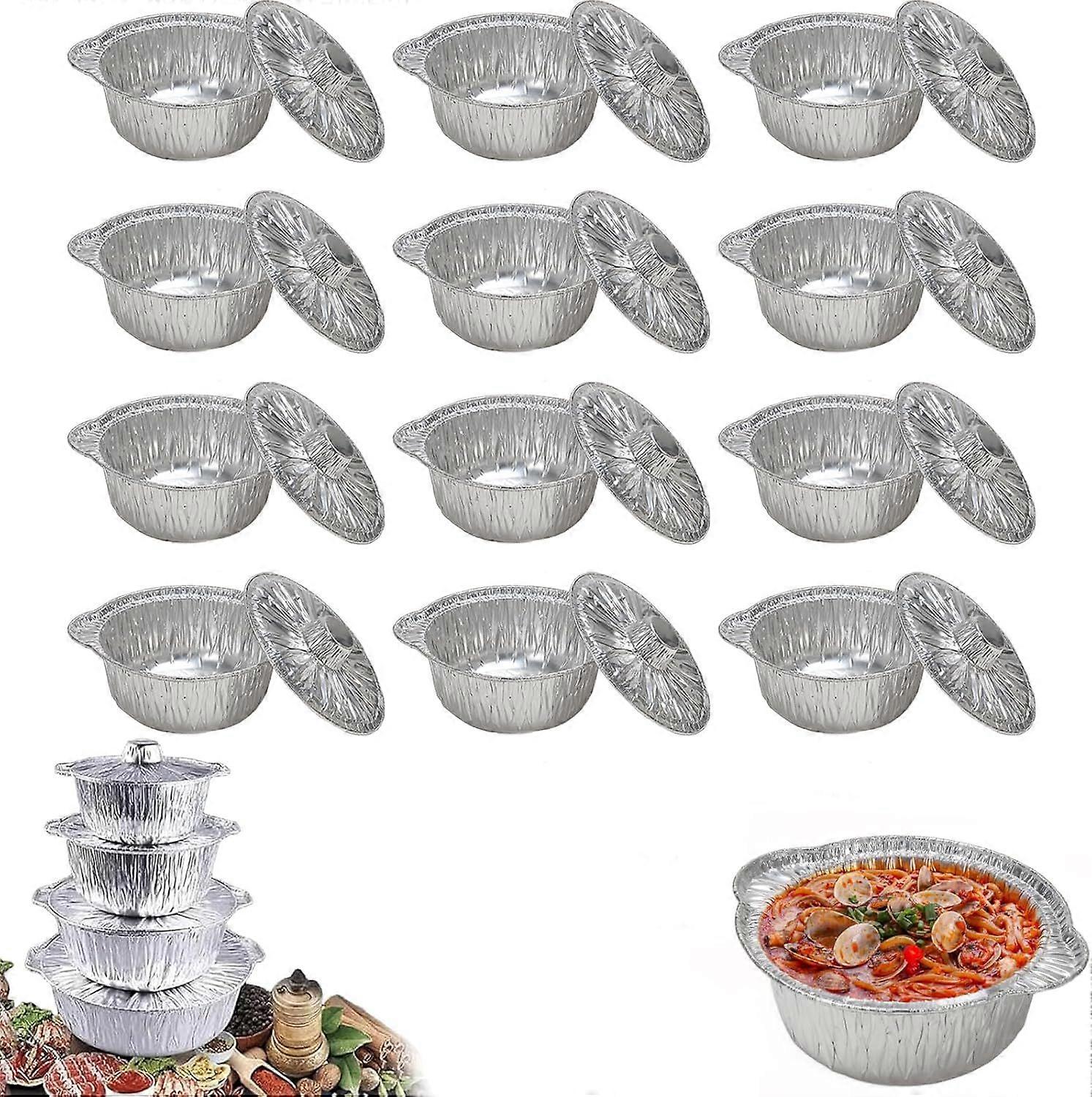 Easy to Use and CleanThe round pans with lids make baking a breeze. Simply fill with your favorite ingredients, cover with the lid, and bake to perfection. After use, simply dispose of the pans for effortless cleanup.Disposable Aluminum Pots with LidsAluminum foil pie pans disposable baking pans round tin pot with lid camping hot pot baking foil pans pizza pies quiche pot for oven toaster grill cooking roasting broiling event take out restaurant.Microwave Tin Foil PotTin foil bowl outdoor tin foil pot oven safe foil tin made of premium aluminum foil material, the pot is durable and sturdy, can be used with confidence. Keeping the grill clean with the disposable tin foil pan is simple and cost- effective.Multiple UsesAluminum pot disposable, simply place one on top of an air fryer, pressure cooker, rice cooker or grill. Great for homemade cakes, toasts and casserole dishes, safe for use in the refrigerator, oven and toaster.Oven Safe Foil Tin Aluminum pots for cooking safe box aluminum foil silver barbecue foil pot baking pot aluminum foil liners baking pan air fryer food recyclable cooking pot vacation a practical and essential accessory for home, outdoor camping and BBQ. They can help you a lot when camping.