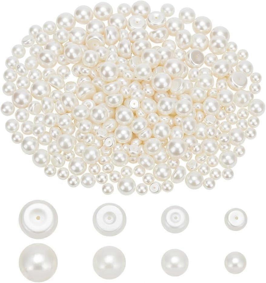 280 Pcs 4 Sizes Half Flatback Pearls 8mm 10mm 12mm 14mm compatible with Nail Art, Craft, DIY Jewelry, Makeup 1mm Hole