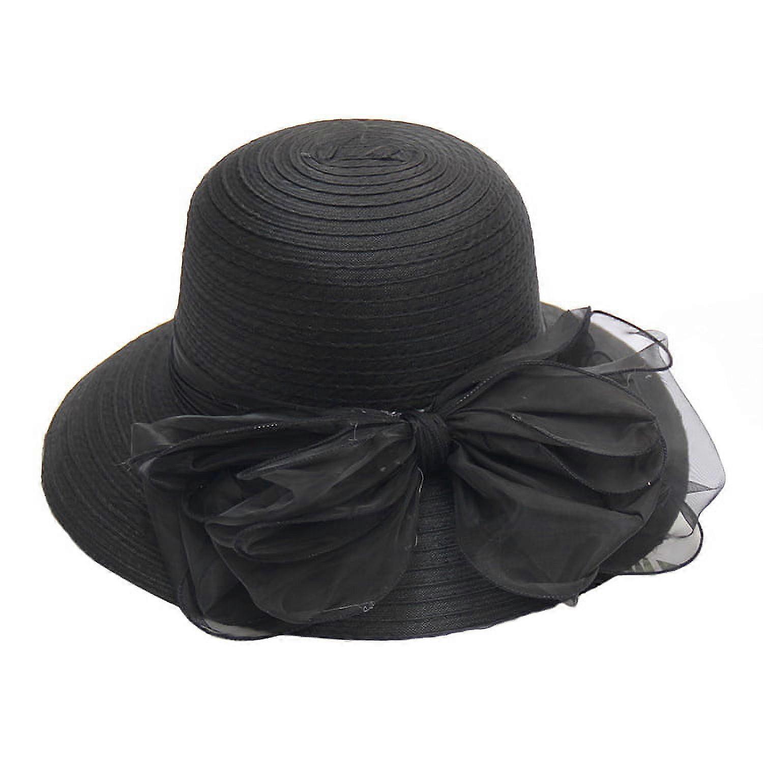 Women's Organza Derby Fascinator Hat Cloche Bowler Hat Cocktail Tea Party Wedding Sun Hat[Black,57cm]