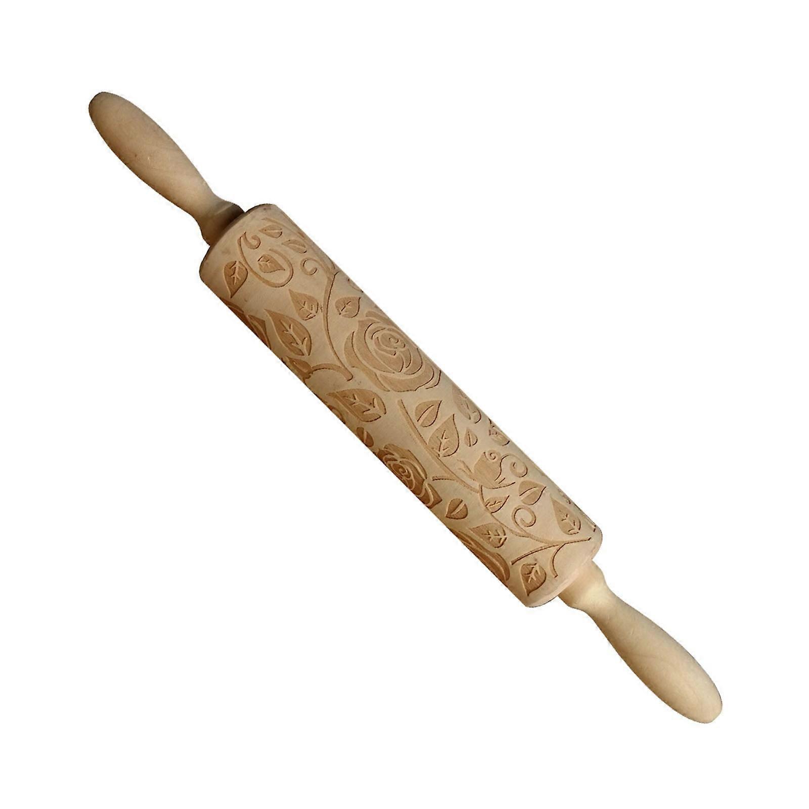 Valentine's Day Embossing Rolling Pin, Heart Rose Design, Wooden Engraved Dough Stamp for Cookies - 14 x 1.6 inch