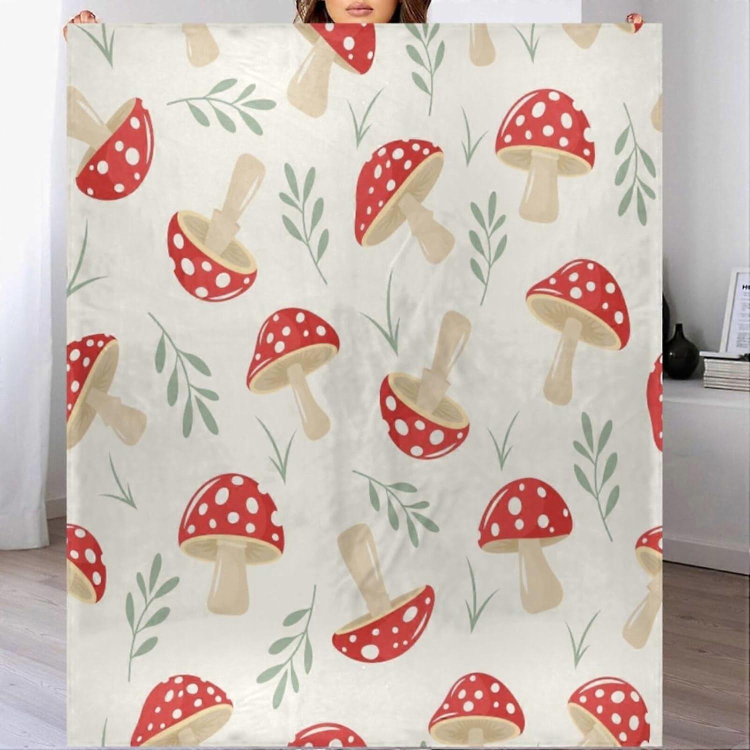 50x60 Inches Cartoon Flat Mushrooms Throw Blanket - Soft Cozy Flannel Fleece, Lightweight Warm Fuzzy Blanket for Couch, Bed, Sofa, Chair