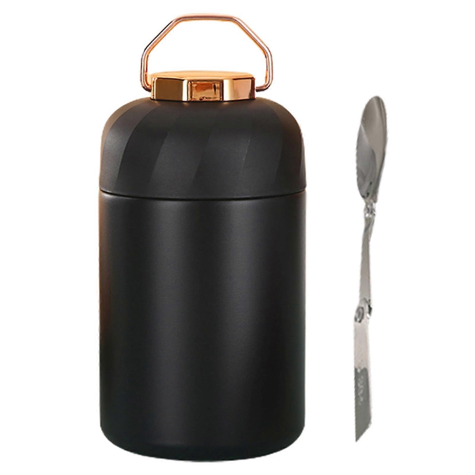 Hariumiu Insulated Food Jar 600ml Stainless Steel Food Flask Container with Foldable Spoon Non-slip Handle Leakproof Soup Jar for Hot Cold Food
