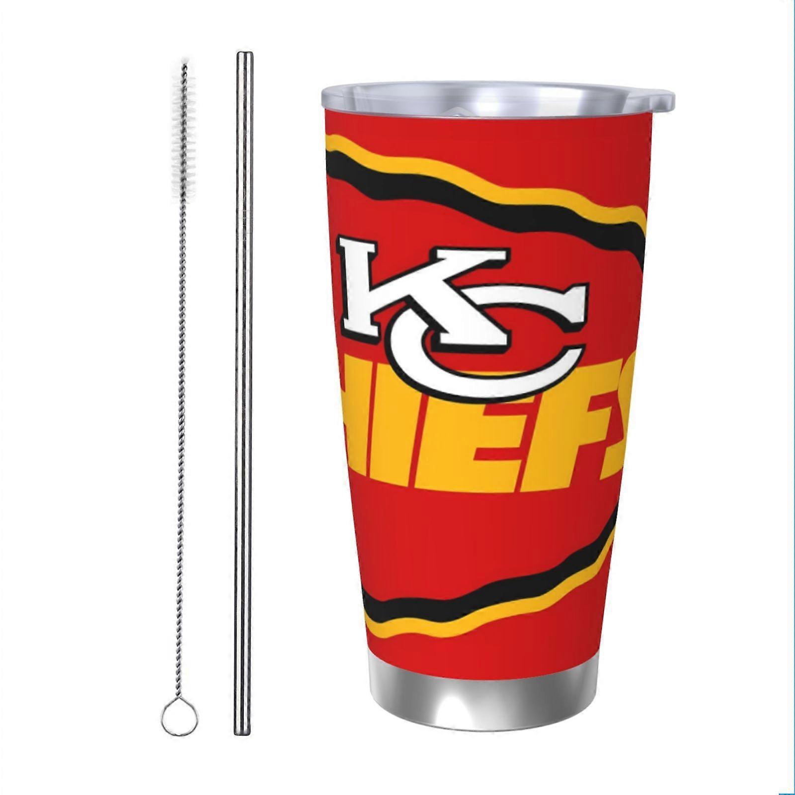 KC Chiefs Football Team Theme 20oz Stainless Steel Thermos Cup with Lid & Straw - Compatible with Car Cup Holders, Hot & Cold Drinks - Sports Coffee