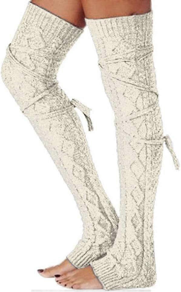 Womens Knitted Crochet Leg Warmers Boot Socks (Beige)