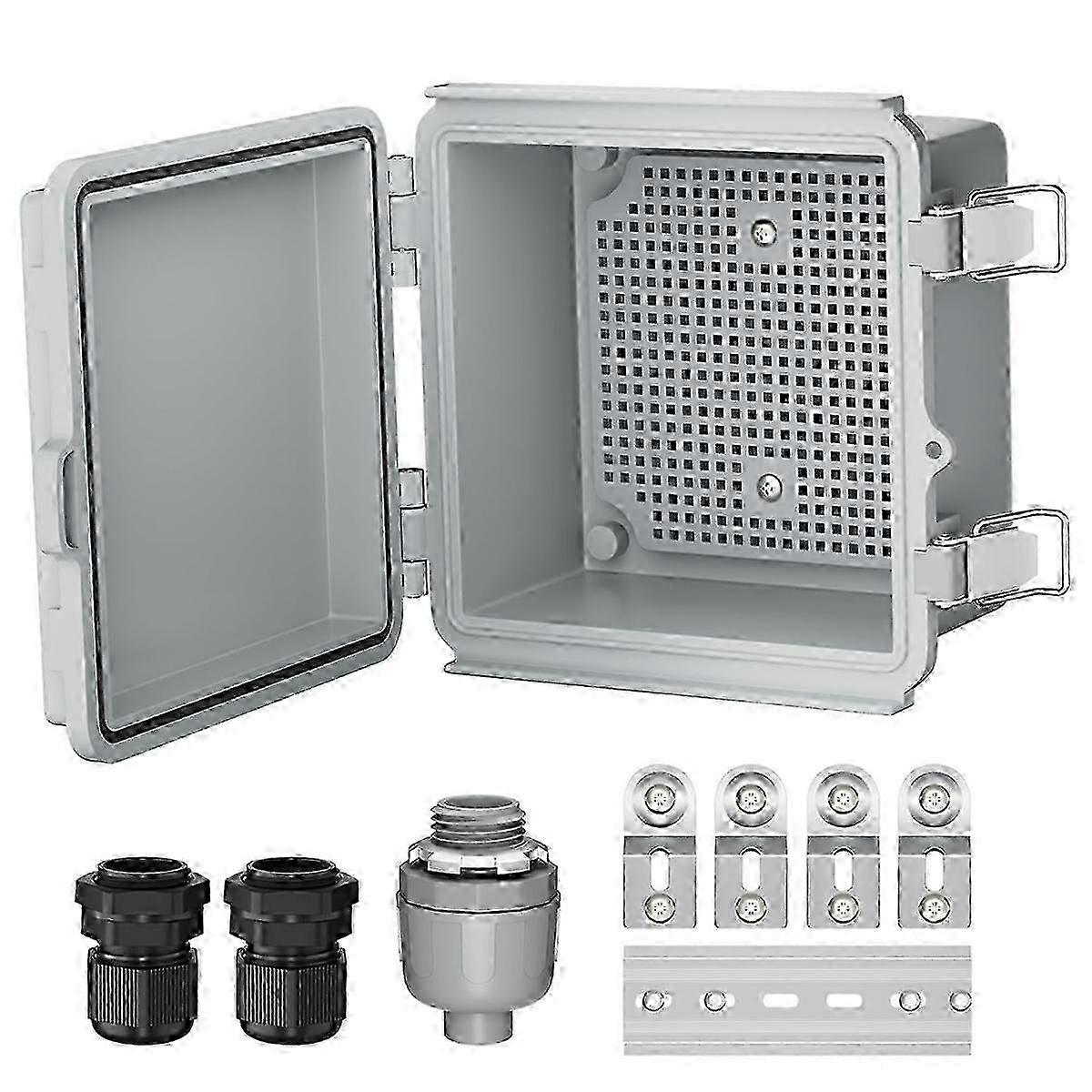 IP67 Waterproof - This outdoor electrical box is weatherproof and IP67 waterproof, which makes the plastic box have excellent waterproof and dustproof performance. The built-in water seal can effectively prevent water from entering. Product size - The inner size of this plastic junction box is 5.1 inches x 5.1 inches x 3.3 inches. The outer size: 6 x 6 x 3.5 inches. Aluminum DIN rail - This plastic engineering box is equipped with an aluminum DIN rail, which is convenient for installing some common electrical products such as switches, , relays, , contactors, etc. Application - This outdoor junction box is suitable for electronics, power supplies, for devices, water pump controllers, home DIY projects, ships, etc. In addition, it can receive WiFi signals well. Colour:Gray Material:Plastic Package Contents: 1 set x Outdoor waterproof junction box Only the above package content, other products are not included. Note: Light reflection and different displays may cause the color of the item in the picture a little different from the real thing. The measurement allowed error is 1-3cm.