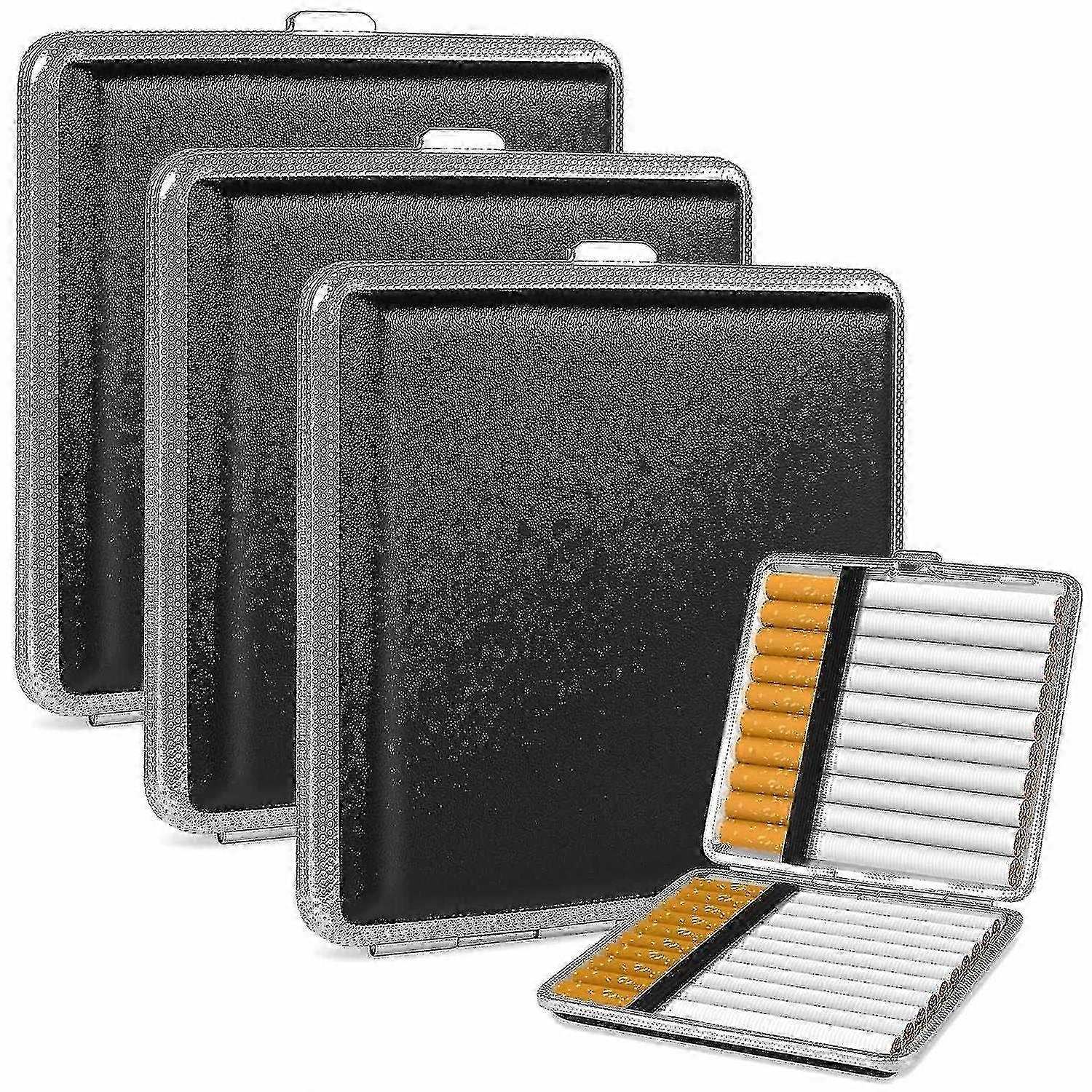 3 Metal Cigarette Cases in Black with Leather Holder for 20 Cigarettes