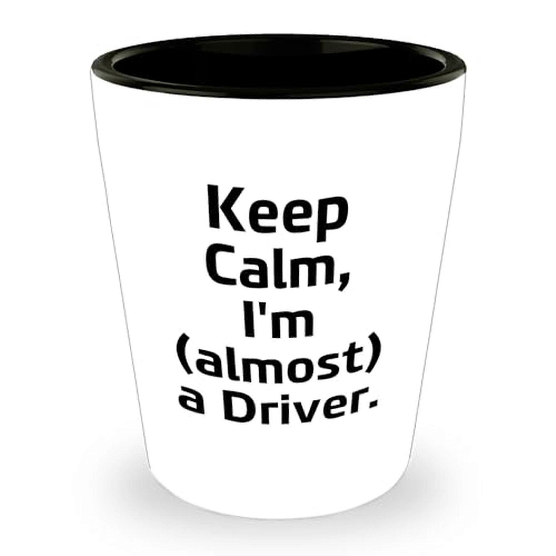 Are you or someone you know going to take the driver's test soon? Celebrate the occasion with our funny Driver Shot Glass! This unique shot glass features the humorous quote "Keep Calm, I'm (almost) A Driver." It's the ideal gift for any driver, whether they're new behind the wheel or have been driving for years. Made from sturdy ceramic, this shot glass is both microwave and dishwasher safe for easy cleaning. It holds a generous 1.5 ounces of your favorite beverage, making it perfect for enjoying a celebratory toast. The white color and sleek design make it a stylish addition to any home bar or kitchen. Whether you're giving it as a gift to a son, daughter, friend, or coworker, this Driver Shot Glass is sure to bring a smile to their face. It's the perfect way to commemorate their special day and show your support for their driving journey. It's also a great gift for Father's Day, birthdays, holidays, or any other special occasion. Don't wait to get your hands on this fun and functional shot glass. Order yours today and help your favorite driver celebrate their journey behind the wheel! Made from high-quality glass for durability and a sleek look, perfect for daily use or special occasions. Features a funny and motivational quote, guaranteed to bring a smile and encouragement to any driver. Ideal gift for sons and daughters to show appreciation and support for their driving family member. Perfect for Father's Day, birthdays, or just because—adds a touch of humor to any celebration. Compact size for easy storage or travel, making it convenient to use at home or on the road.