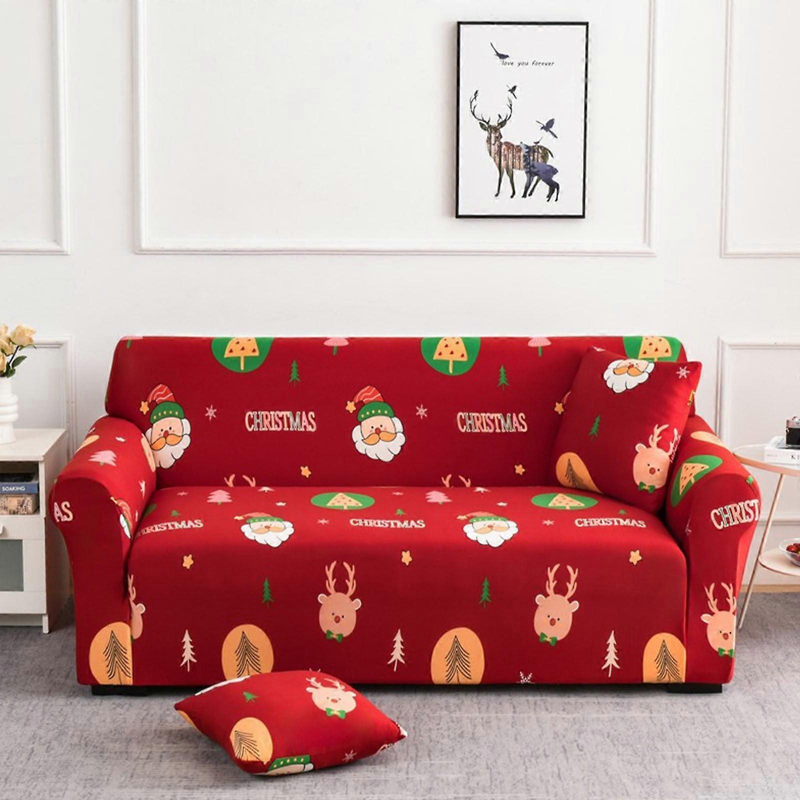 Luckky Christmas Sofa Slipcover, Christmas Printed Elastic Couch Cover Compatible with 35" x 55" Sofas, Includes 1 Pillow Case