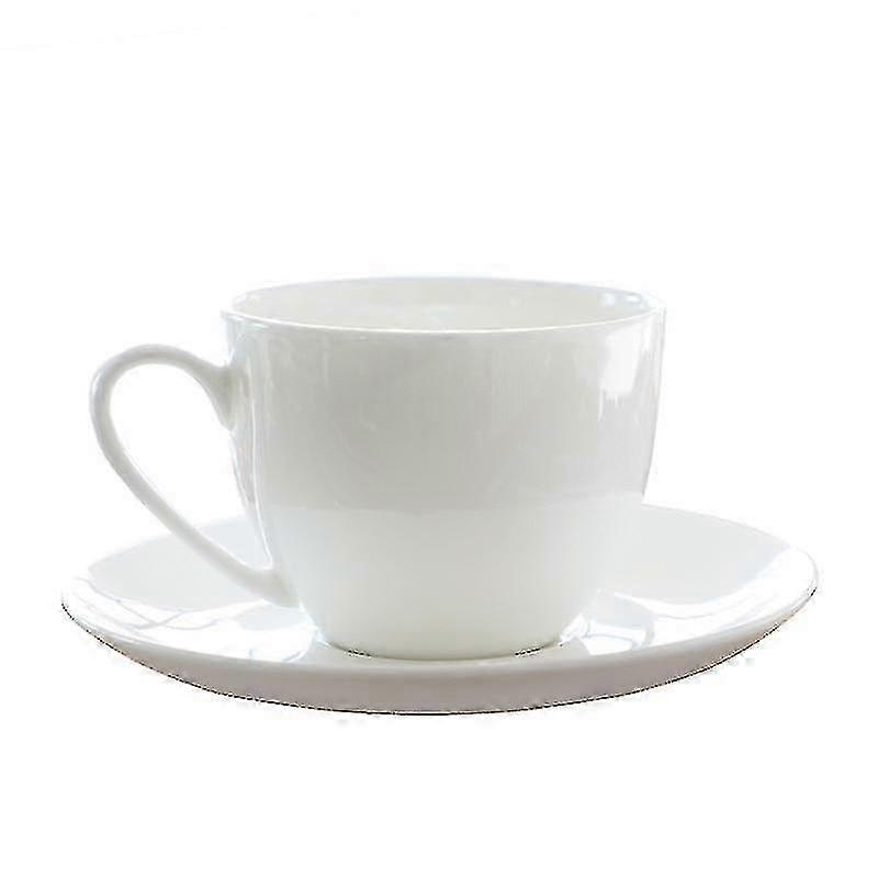 Coffee Cup & Saucer Set, Pure White Handmade Ceramic Bone China (36% Bone Powder), 201-300ml for Latte Cappuccino Flower Tea