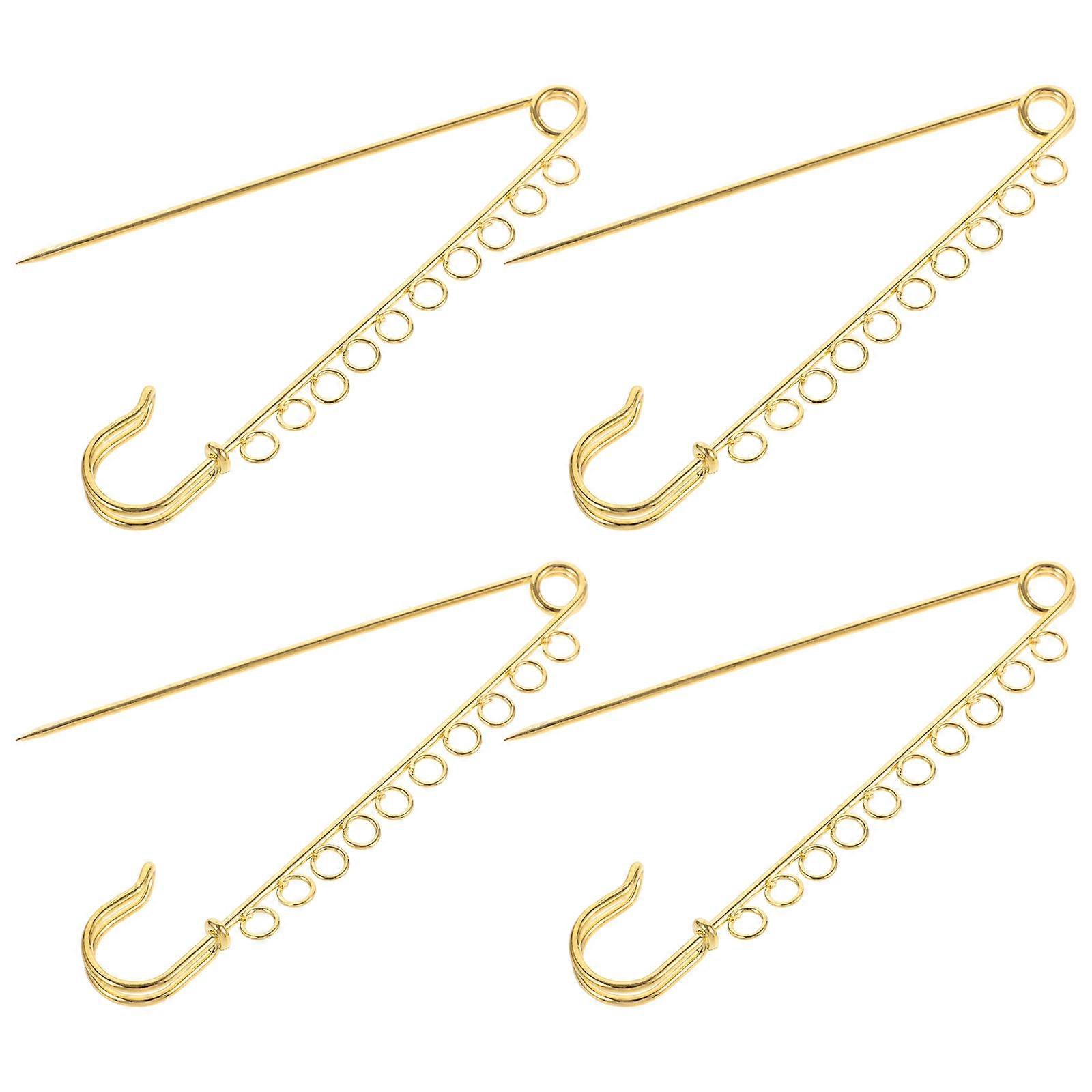 Clothes Pins 4 Pcs Brooch Findings Needles with Holes Big Circled Preserve Color Metal