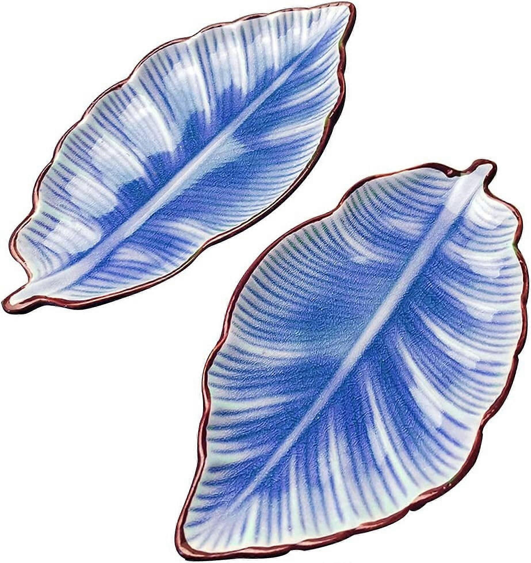 Porcelain Spoon Rest, 7" Blue Leaf Shaped Ceramic Holder (2 Pcs), Kitchen Utensil, Farmhouse Decor, Dishwasher Safe