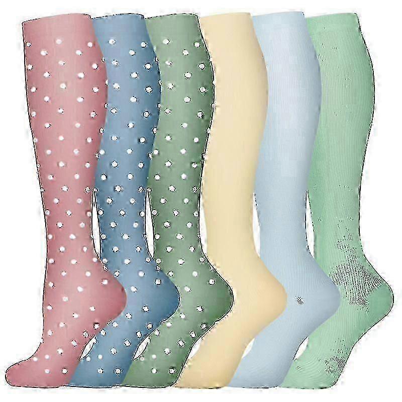 6 Pack Compression Socks for Sports & Yoga - Unisex Calf High, 18, for Graduated Support & Muscle Recovery by