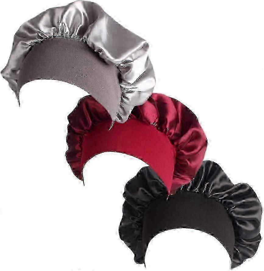 3 Pcs Satin Bonnet Hair Caps with Elastic Soft Band - Large Silky Shower Hats for Women's Curly Hair Protection
