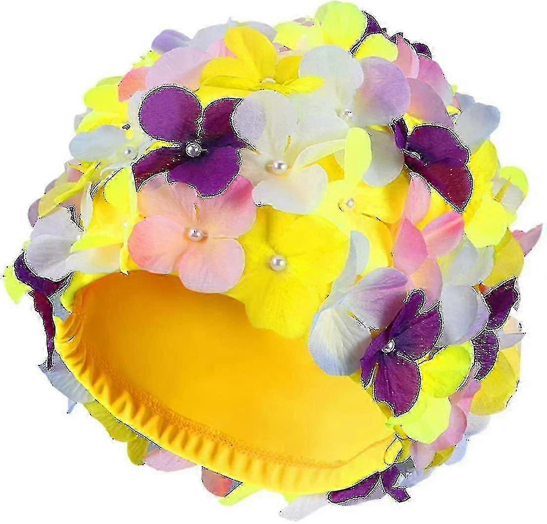 Optimized Fashion Swimming Cap with Petals Design - Retro Style, Floral Print