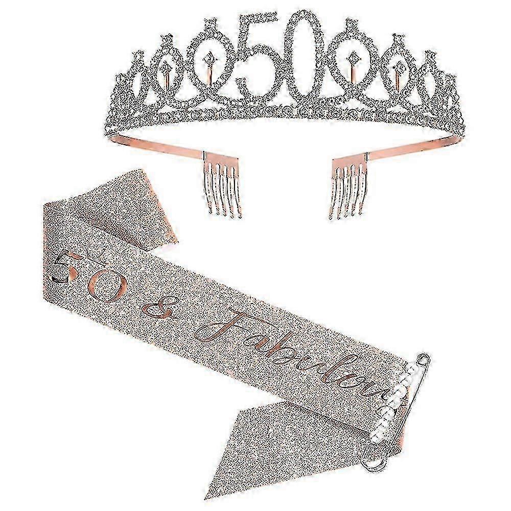 50th Birthday Sash And Tiara Rose Gold Birthday Sash Crown 50 & Fabulous Shoulder Strap And Tiara For Women 25-26s