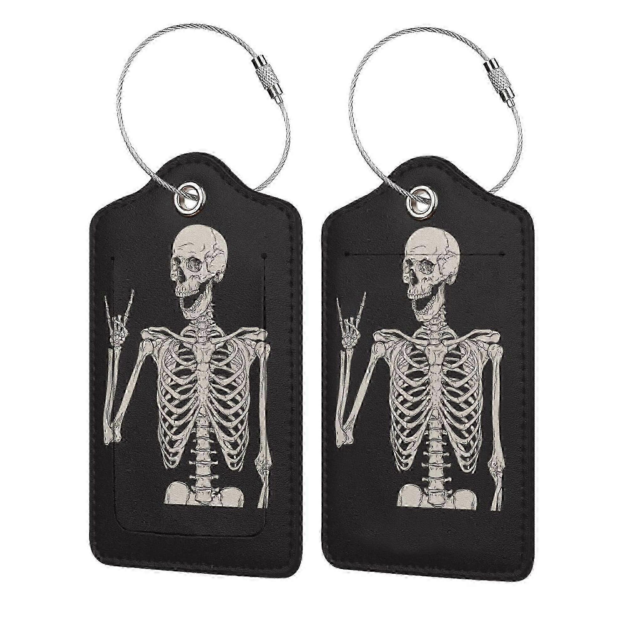 2 Pack Luggage Tags Skull Rock and Roll Cool Leather Travel Bag Labels for Adults Tourists 25-26s