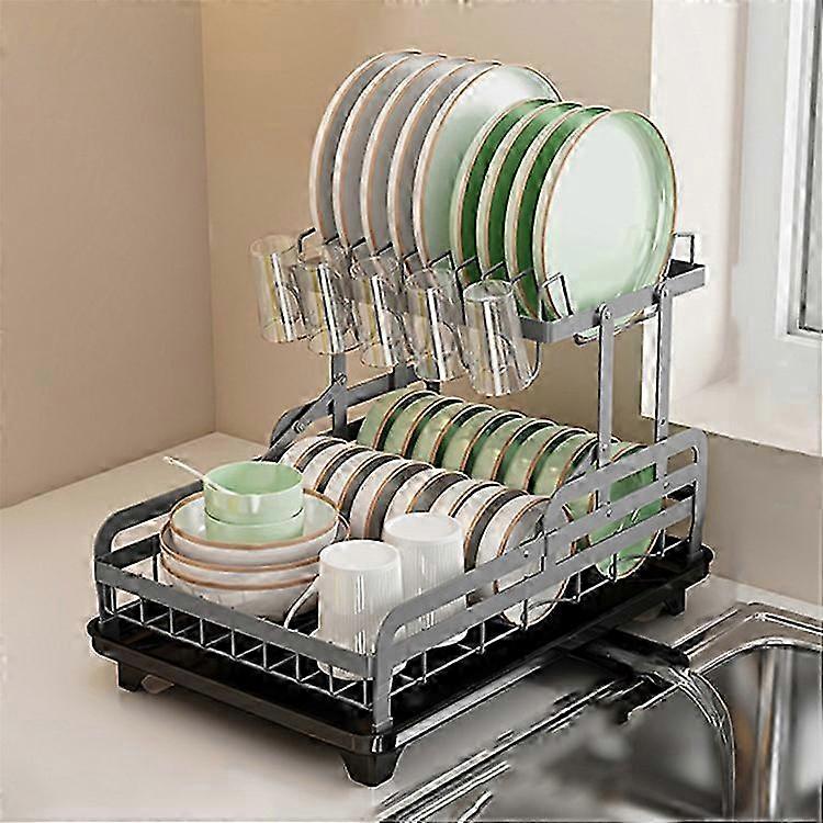 006-WDJ-8023 Dish Drying Rack 2 Tier Kitchen Organizers with Cup / Cutting Board Holders 25-26s