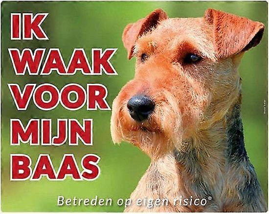 Stickerkoning Welsh Terrier Waakbord - Ik Waak Voor Mijn Baas