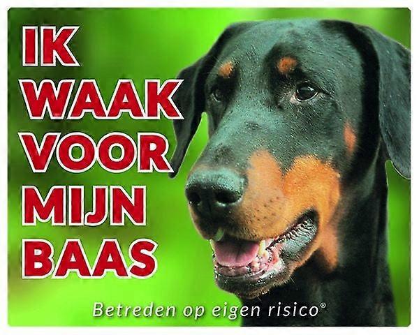 Stickerkoning Dobermann Waakbord - Ik Waak Voor Mijn Baas