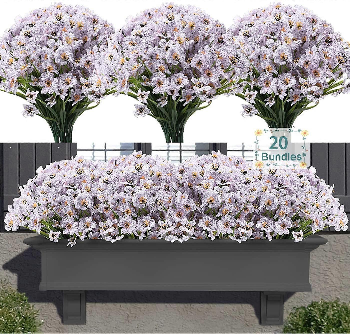 20 Bundles Outdoor Artificial Flowers, UV Resistant Fake Flower with Plastic Plants Faux Silk Flower compatible with Hanging Planter for Front Porch,