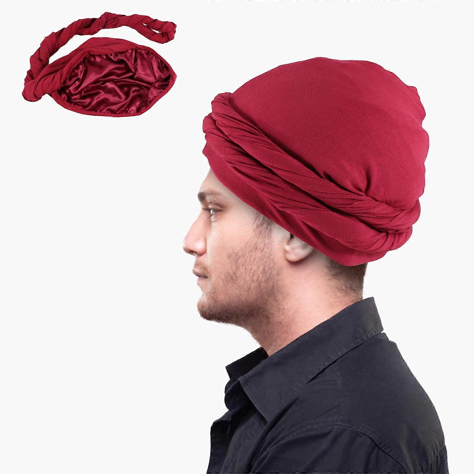2024 New,men Turban Vintage Twist Head Wraps Elastic Unisex Elegant Wear Wave Cap Unisex Elastic Head Cap--red