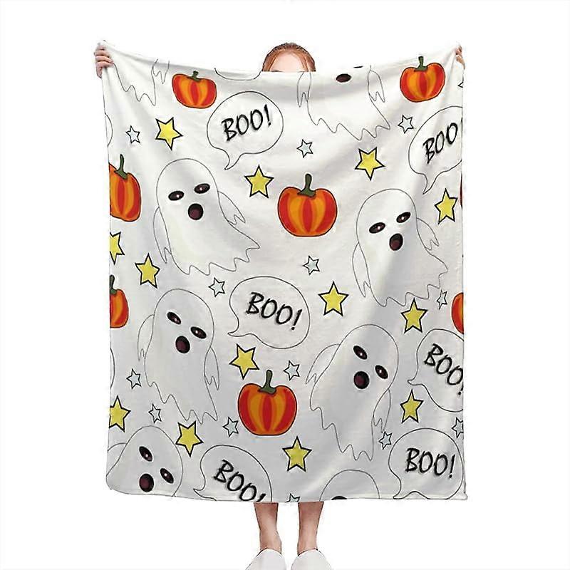 Halloween Blanket 60"x80" Soft Fleece Flannel Throw for Couch, Compatible with Sofa & Travel - Pumpkin Ghost Design