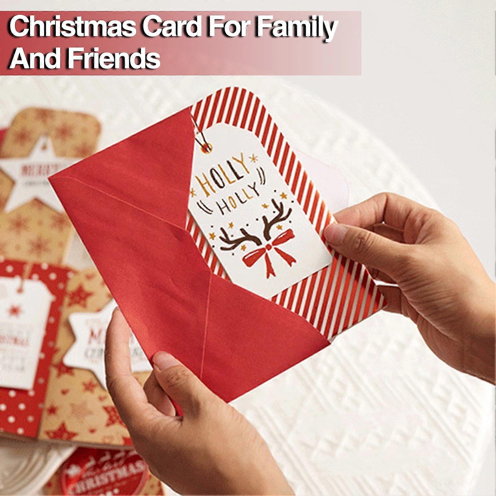SUSUchens 3/4Pcs Christmas Greeting Card Durable Unique Cardboard Smooth Writing Christmas Cards for Family Friends Style D