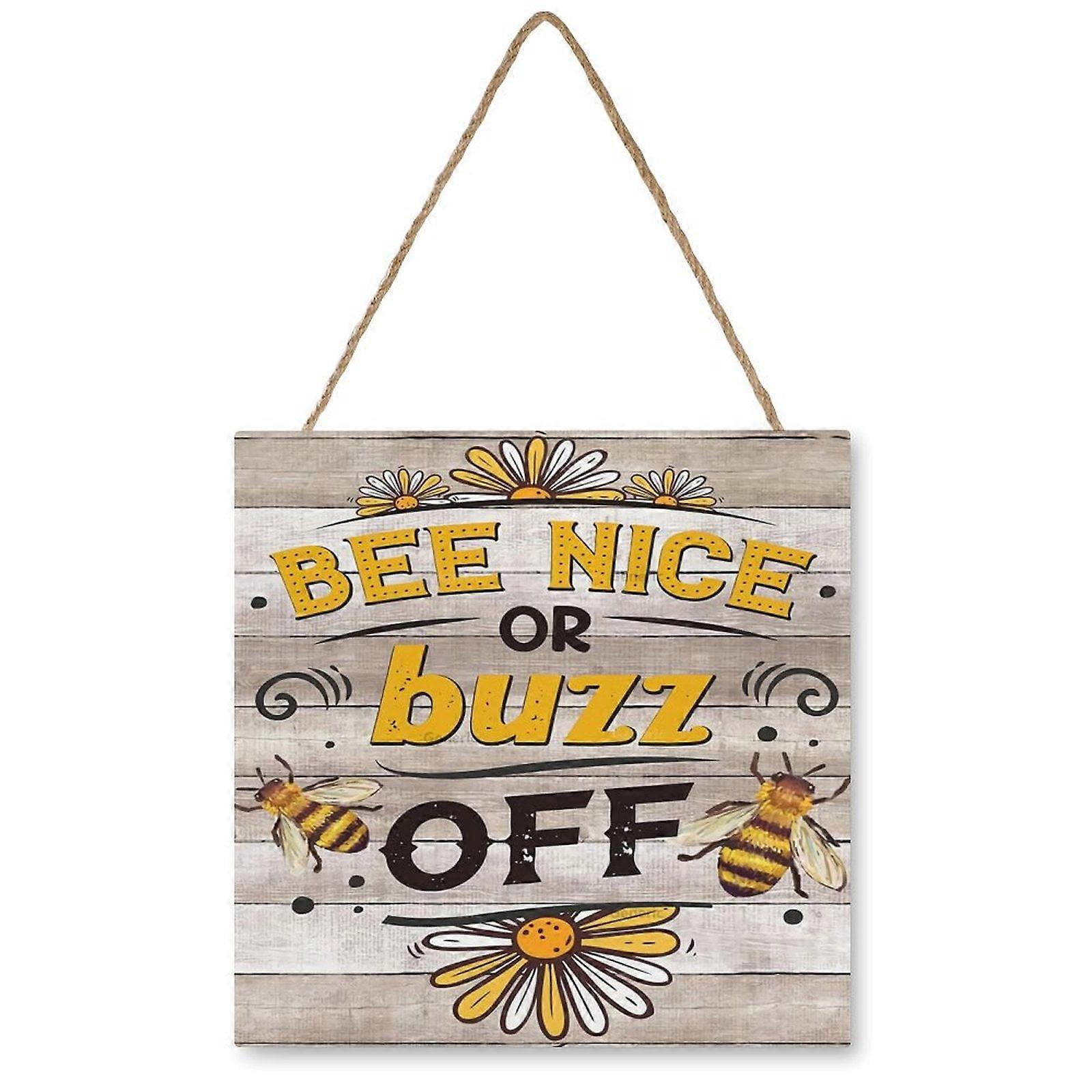 Funny Wooden Sign 12x12 inch - Bee Nice Or Buzz Off Decor, Farmhouse Hanging Plaque, Inspirational Home Decor