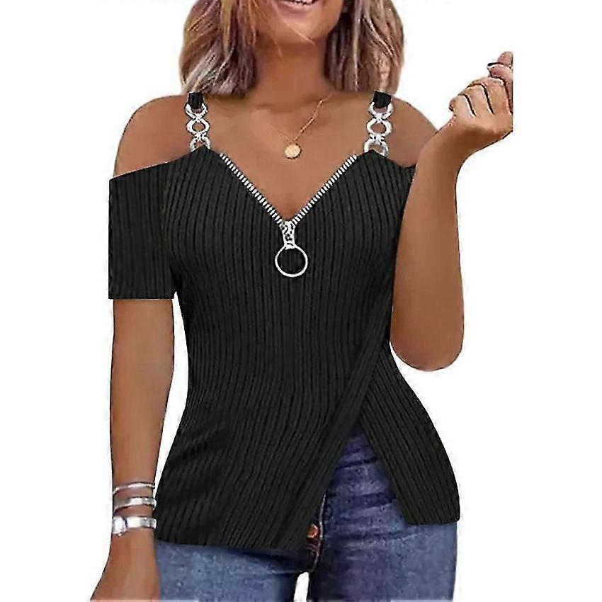 Features:Versatile: This V-neck T-shirt is perfect for pairing with leggings, slacks, sneakers and more.Skin friendly soft: The face is made of high-quality polyester fiber material, soft and comfortable, and does not hurt the skin.Spring and summer essential: Short sleeves, perfect for spring and summer wear. It's a wardrobe staple.Unique design: This shirt uses a simple, irregular zipper design to highlight the wearer's personality.Wide range of application: suitable for dating, dinner, work, sports, daily life, family, school, travel.Notice:1.Actual color may be slightly different from the image due to different light effect2.Please allow 1-3cm deviation due to manual measurement3.Asian size is smaller than eu/us/uksize,please compare the detail sizes before purchasing. Material:PolyesterSize:S,M,L,2XL,3XL Sizes