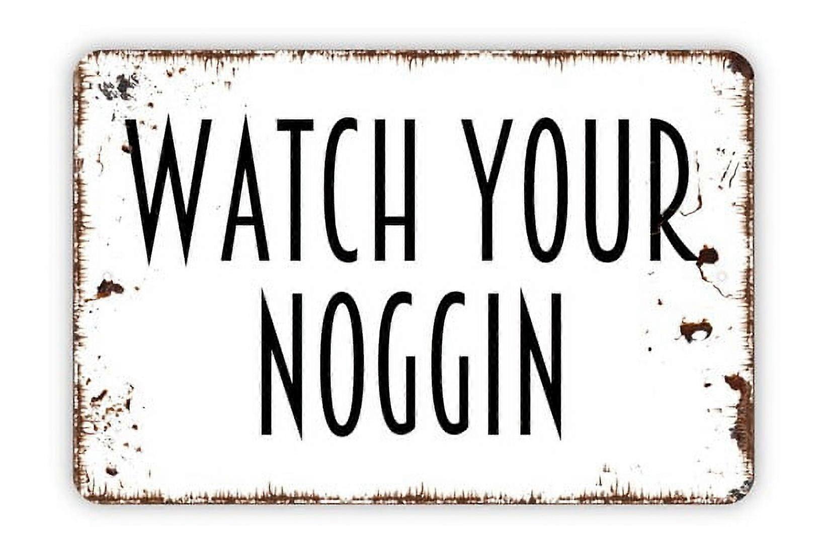 (Aluminum metal) Watch Yor Noggin Sign Metal Sign Farmhouse Contemporary Modern Wall Metal Sign Size: 8 x 12 Inch