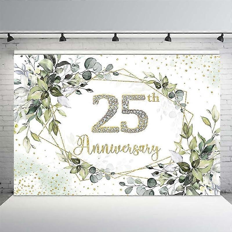 Custom 7x5ft Boho Happy 25th Anniversary Backdrop, compatible with Pampas Grass, Engagement Banner, Green Leaves, 50th Wedding Party Decor