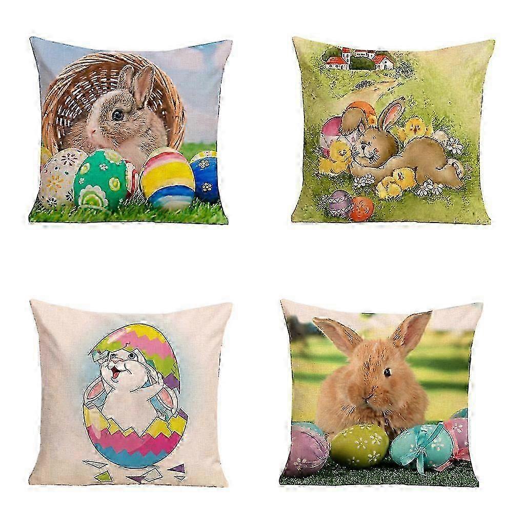 4pcs Easter Rabbit Bunny Egg Pillow Cover 18 X 18 Inch Easter Decoration Linen Cushion For Case Spring Decor For Sofa Couch Car Cs