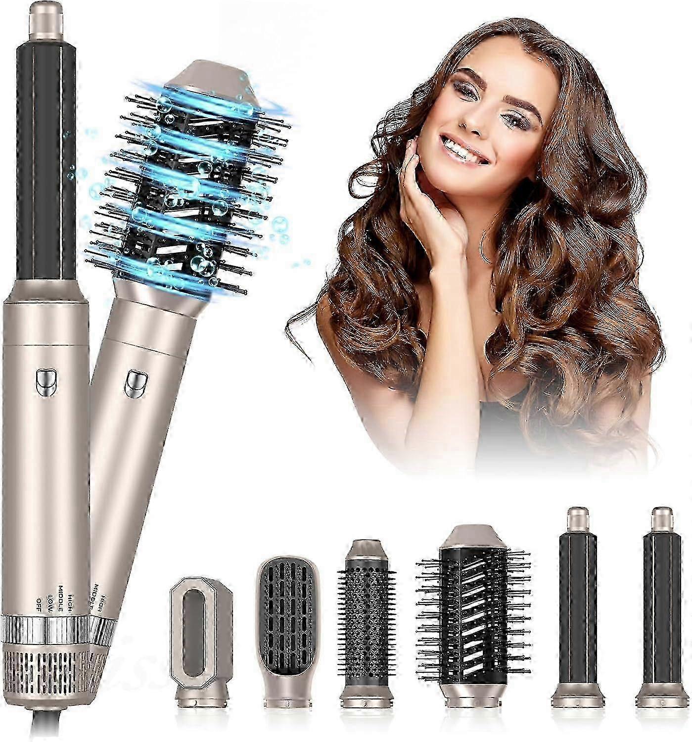 Hair Dryer Brush 6 In 1 Hair Styler Hot Air Brush With 1000w Negative Ionic Blow Dryer,leftright Auto Wrap Curling Iron