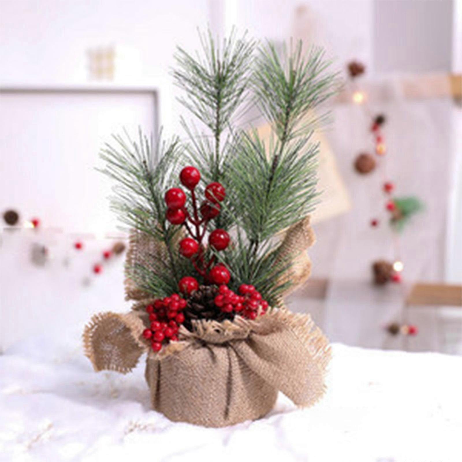 Christmas Tree Ornaments, Artificial Flocked Mini Christmas Tree with Red Berries & Pine Cones, Cloth Bag Base, Christmas Scene Decoration