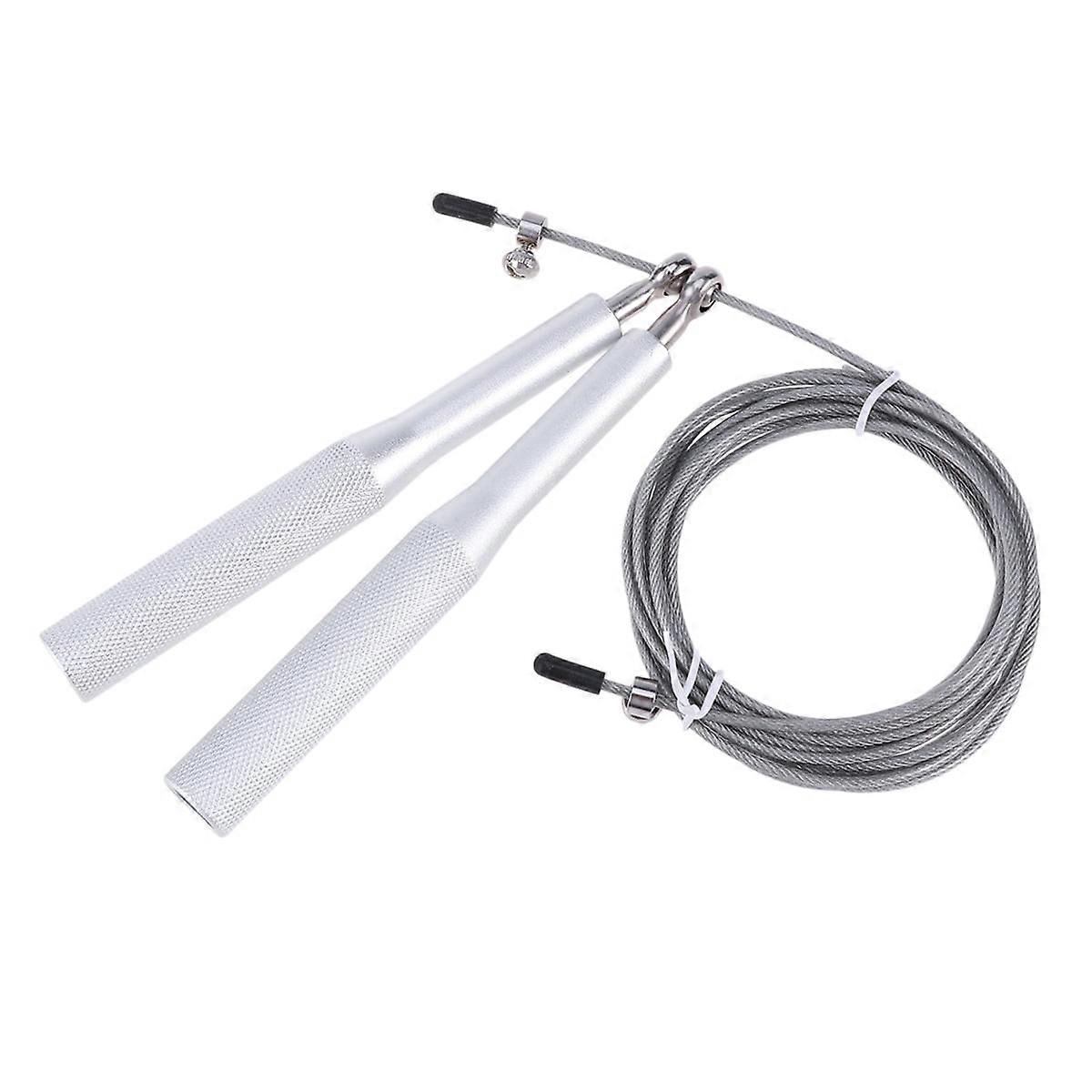 Description This item is a weighted skipping rope. PVC solid cable ensures long working life, perfect for high workouts. Anti-slip grip handles are easy and comfortable to hold and avoids slip, stay in your hands firmly. The jump rope is perfect for MMA, crossfit, cardio exercises, double unders, and even triple unders. Feature - Color: Sliver. - Material: Aluminum Alloy and PVC. - Length: About 3M. - Our jump rope is fitted with a very efficient ball-bearing system increases its rotation power and gives you an flexibility of movement, which allows for faster and easier than regular jump ropes. - The quick cable length adjuster inside each aluminum handle means that the jump rope can be used by the entire family and training partners alike. - Skipping can the function of human cardiovascular, respiratory and nervous system. A great tool for kids and adult to keep fit. - The jump rope is perfect for home, gym and outdoor workouts. Our jump rope is fitted with a very efficient ball-bearing system increases its rotation power and gives you an flexibility of movement, which allows for faster and easier than regular jump ropes |The quick cable length adjuster inside each aluminum handle means that the jump rope can be used by the entire family and training partners alike |Skipping can the function of human cardiovascular, respiratory and nervous system A great tool for kids and adult to keep fit |The jump rope is perfect for home, gym and outdoor workouts