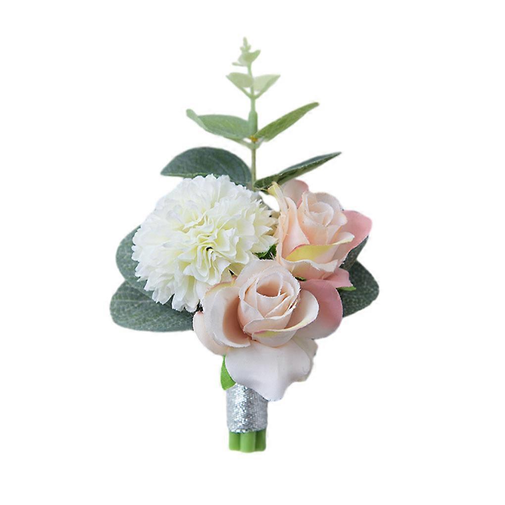 5pieces Wedding Flowers Safe And Reusable Wrist Corsage For Men Boutonniere Artificial Brooch