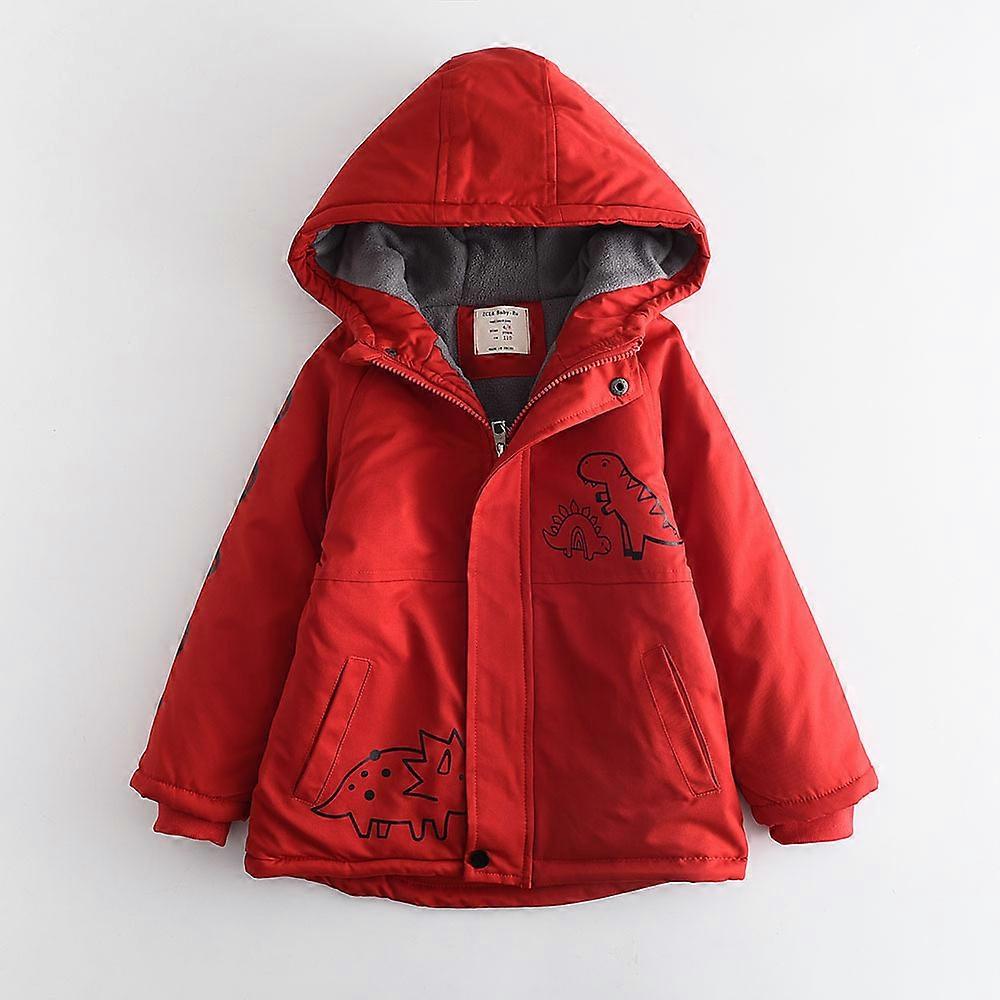 Boys' dinosaur print velvet thickened hooded cotton coat winter
