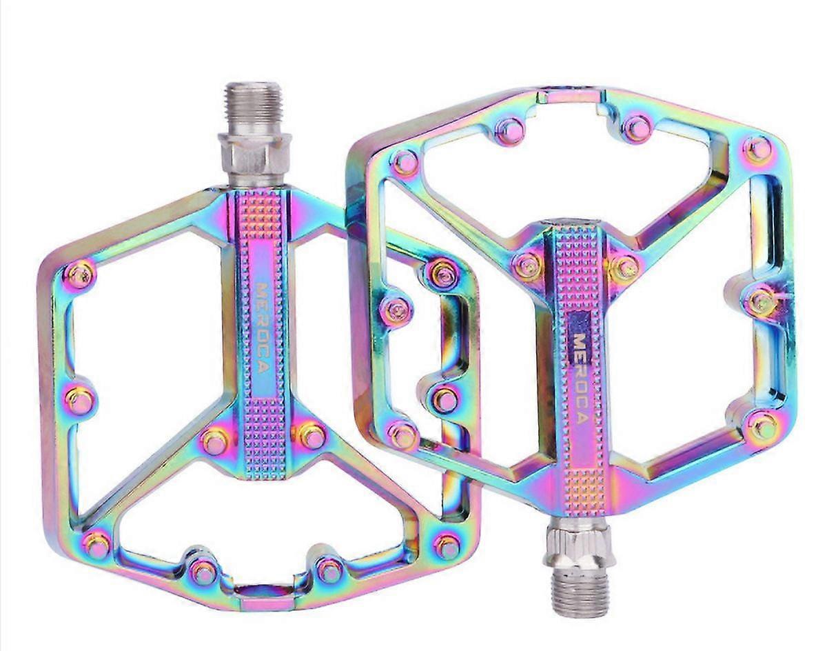 Uclet Bike Accessories Road Mountain Pedal With Removable Non Slip Nails CNC Machining Flat Pedal Aluminum Alloy Non Slip Pedal (Rainbow)