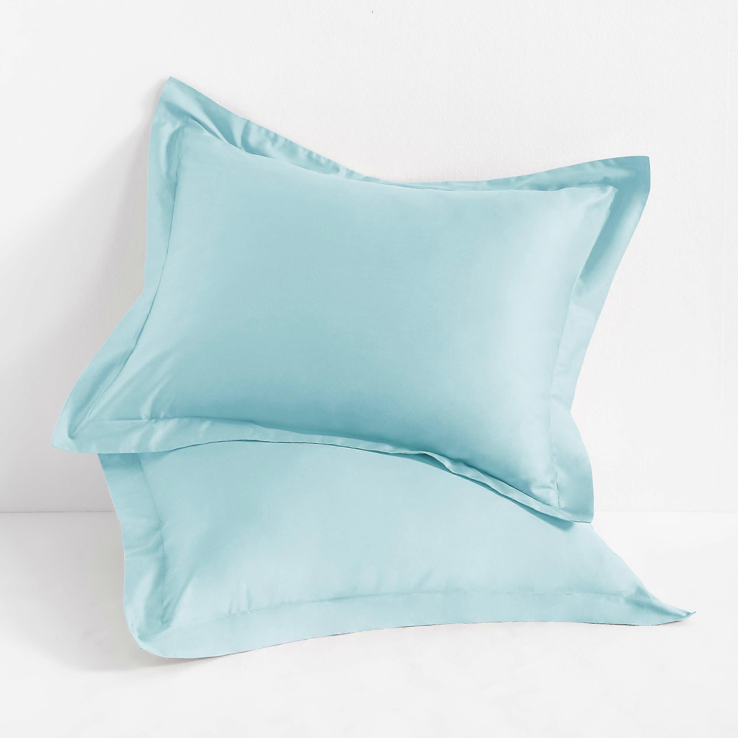 Flxxie 2 Pack 500 Thread Count Cotton Sateen Pillow Shams 20"x36" with 2" Flange, King, Light Blue