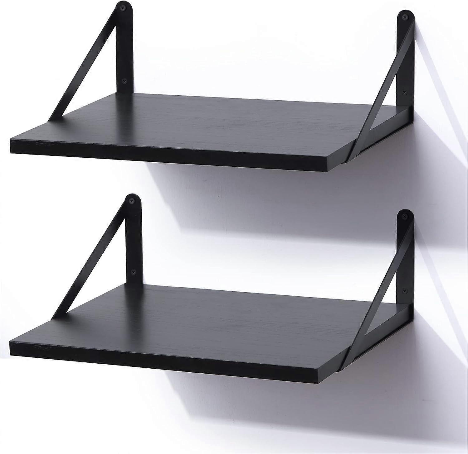 Black Floating Shelves, 12" Deep Wall Mounted Set of 2, Modern Wood Wall Shelves for Bathroom, Bedroom, Kitchen, Living Room