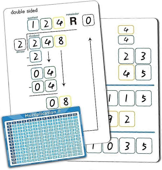 Dry Erase Multiplication & Division Practice Board 8"x12" with 4"x2.5" Chart for Kids, Students, Home & Classroom
