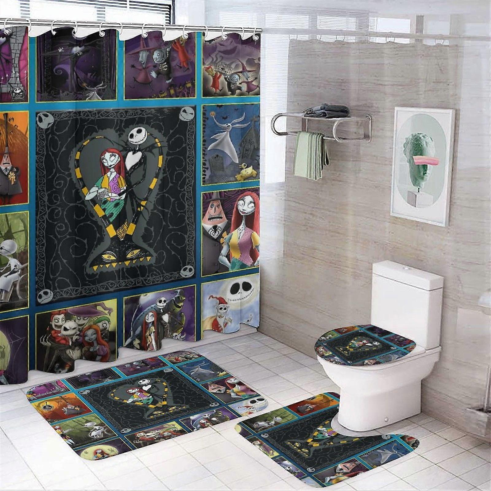 4 Pcs The Nightmare Before Christmas Bathroom Set compatible with 12 Hooks, Non-Slip Rugs, Shower Curtain 72x72 in