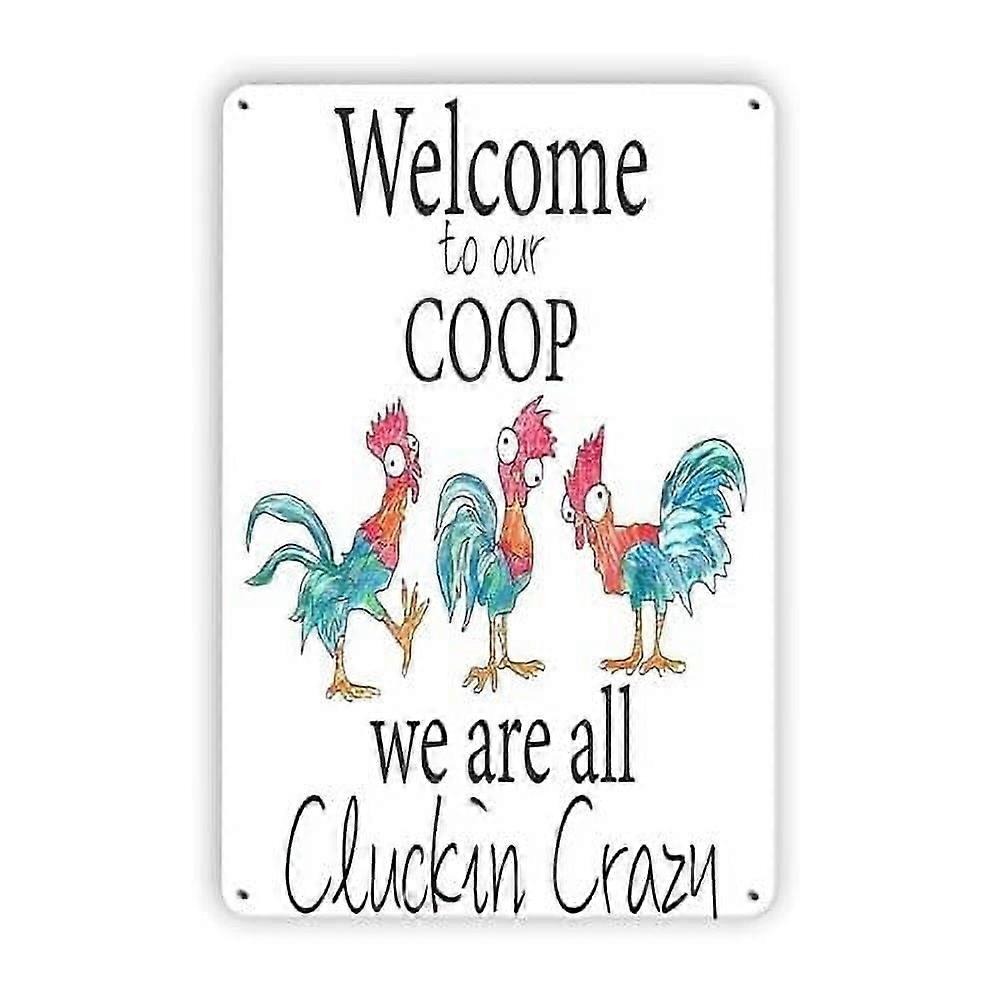 Fesy Welcome To Our Coop We're All Cluckin Crazy Metal Chicken Yard Signs Coop Decor Farmhouse Signes Size: 16 x 12 Inches